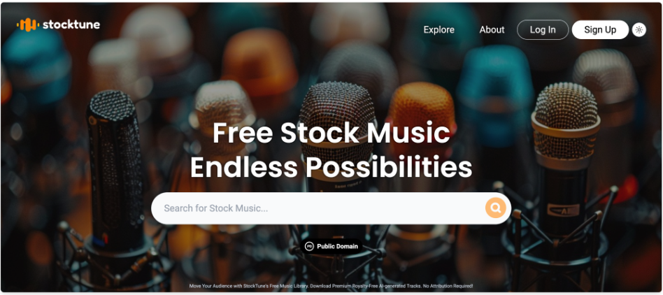 Discover StockTune, the ultimate royalty-free stock music platform for content creators. Powered by AI, our extensive library offers high-quality tracks across various genres. All songs are in the public domain, allowing you to use them in your projects without licensing fees. Whether you're a YouTuber, filmmaker, or artist, StockTune provides the perfect soundtrack to elevate your content. With new music added regularly and a user-friendly interface, finding the ideal track is a breeze. Unlock the future of stock music and bring your creative vision to life with StockTune.